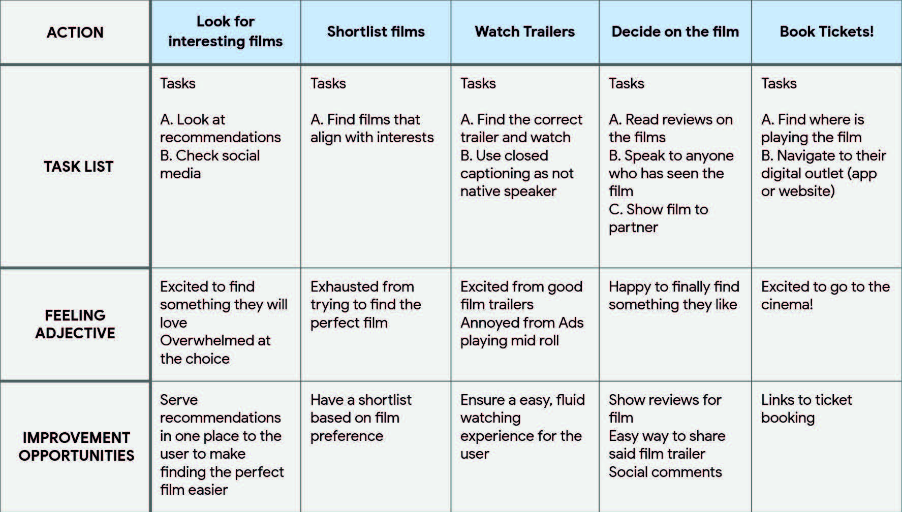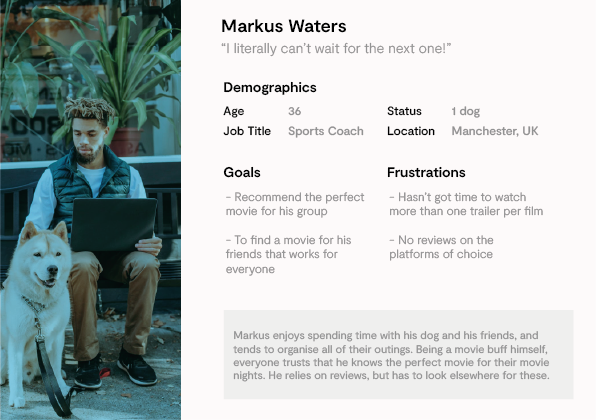Developing user personas proved to be immensely valuable in comprehending the challenges users may face when searching for a movie trailer. Moreover, they provided a deeper understanding of the emotions that users could experience throughout the process.
